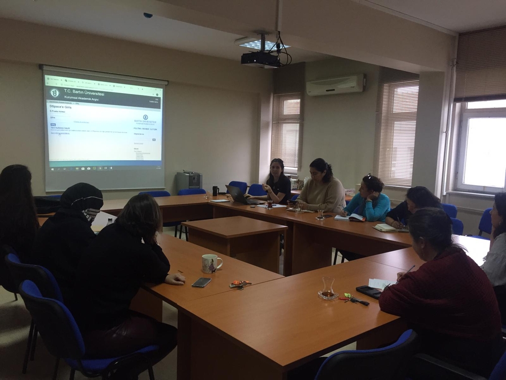 Fakültemiz öğretim elemanlarına 09.01.2020 tarihinde Kütüphane ve Dökümantasyon Daire Başkanlığı personeli Ülkü ÖZGÜVEN  tarafından “açık erişim” eğitimi verilmiştir.