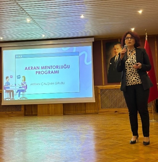 Etkinliğin açılışında, Akran Mentorluğu Çalışma Grubu Başkanı Dr. Öğr. Üyesi Emine Üstün Gökçe program hakkında bilgilendirme yaptı. Dr. Üstün Gökçe, akran mentorluğunun hem akademik hem de sosyal açıdan öğrenciler için önemine değinerek, bu program sayesinde öğrenciler arasında güçlü bir dayanışma ağı oluşturulacağını ifade etti. Bilgilendirme kapsamında, daha önce programda menti (mentorluk alan öğrenci) ve mentor (mentorluk yapan öğrenci) rollerinde yer almış öğrenciler de deneyimlerini paylaştı.